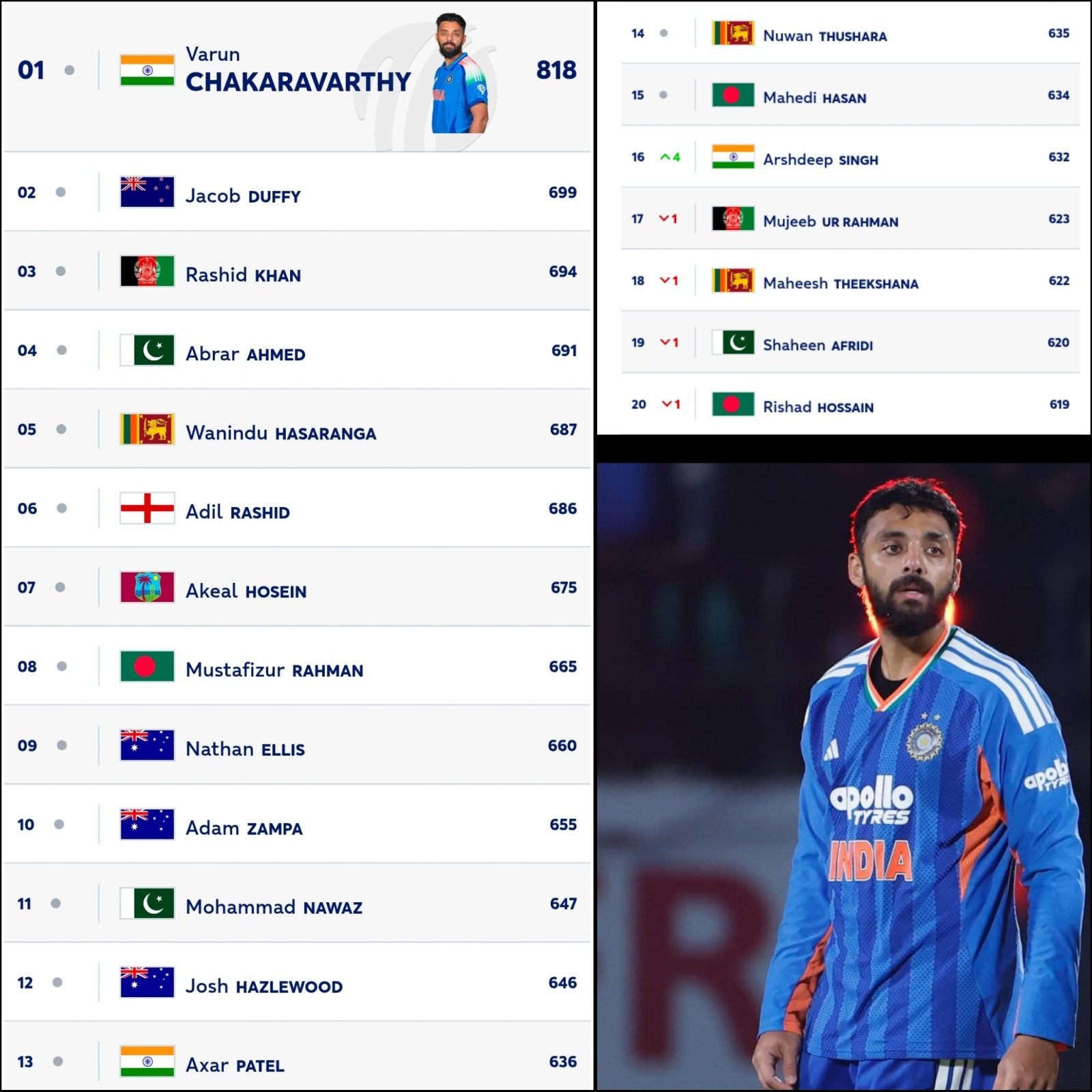 અત્યાર સુધી ટી-20 બોલર્સ રૅન્કિંગમાં ભારતીયોમાં સૌથી વધુ રેટિંગ જસપ્રીત બુમરાહના હતા. 2017માં તેના 783 રેટિંગ હતા જે ભારતીયોમાં આઠ વર્ષ સુધી રેકૉર્ડ હતો જે વરુણે 818ના રેટિંગ સાથે તોડ્યો છે. બીજી રીતે કહીએ તો 800ના રેટિંગ સુધી પહોંચનાર તે પ્રથમ ભારતીય બોલર પણ બન્યો છે.