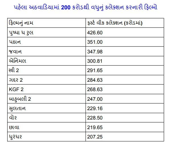 'ધુરંધર' ફિલ્મે પહેલા અઠવાડિયામાં જ 207.25 કરોડનું શાનદાર બોક્સ ઓફિસ કલેક્શન કર્યું છે. આ સાથે 'ધુરંધર' ફિલ્મ પહેલા અઠવાડિયામાં 200 કરોડ કરતાંય વધારે કમાણી કરનારી બીજી ફિલ્મ બની ગઈ છે. આગામી સમયમાં આ ફિલ્મ 250 કરોડને પાર પહોંચી જશે, એવું ફિલ્મી સૂત્રો અનુમાન લગાવી રહ્યા છે. જોકે તેમ છતાંય એવી 11 ફિલ્મો છે, જેનો રેકોર્ડ 'ધુરંધર' ફિલ્મ તોડી શકી નથી.